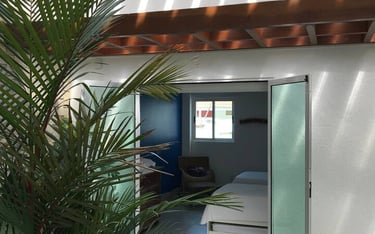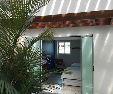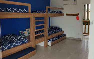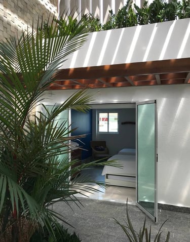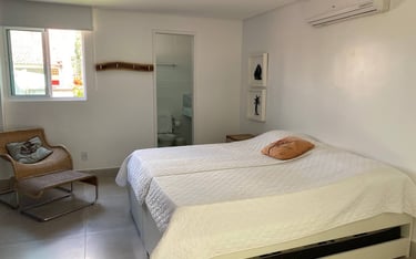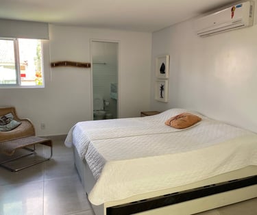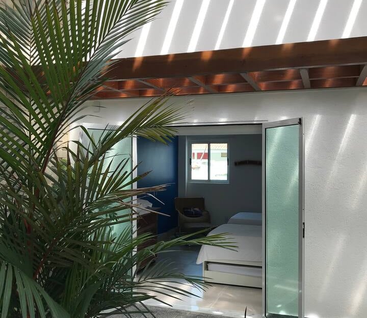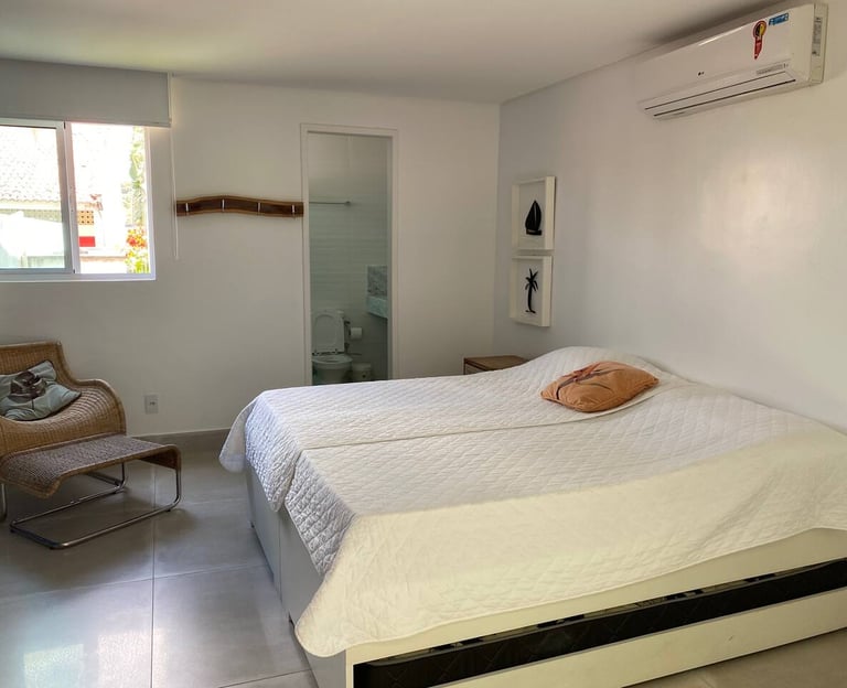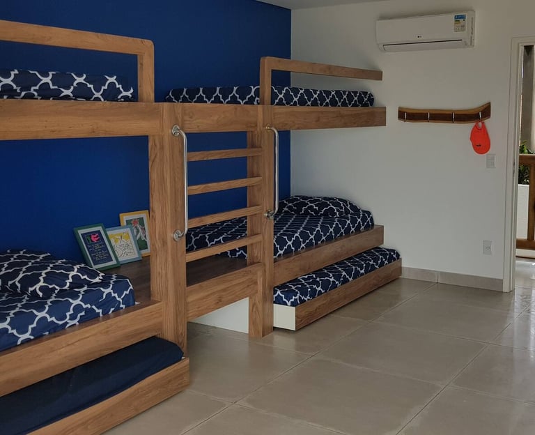 A vibração da ilha! Quarto com varanda privativa e treliches. Ideal para quem quer o melhor custo-benefício e ama a energia do grupo.